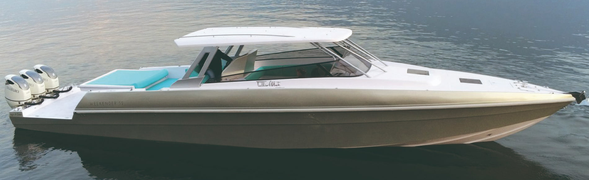 “52 feet (15.75 meters) that cut through the seas without difficulty”. This was the mission behind the creation of the Weekender 52. A tribute to Lake Como, as every single unit produced undergoes trials and development on our local lake, Lario. This boat is designed for fast cruising and meets the growing demand for center console hulls. It offers a spacious cockpit and a cabin for longer cruises, all driven by three or four outboard engines. You cruise on a cushion of air at high speed, with the sensation of the sea gliding beneath the hull.